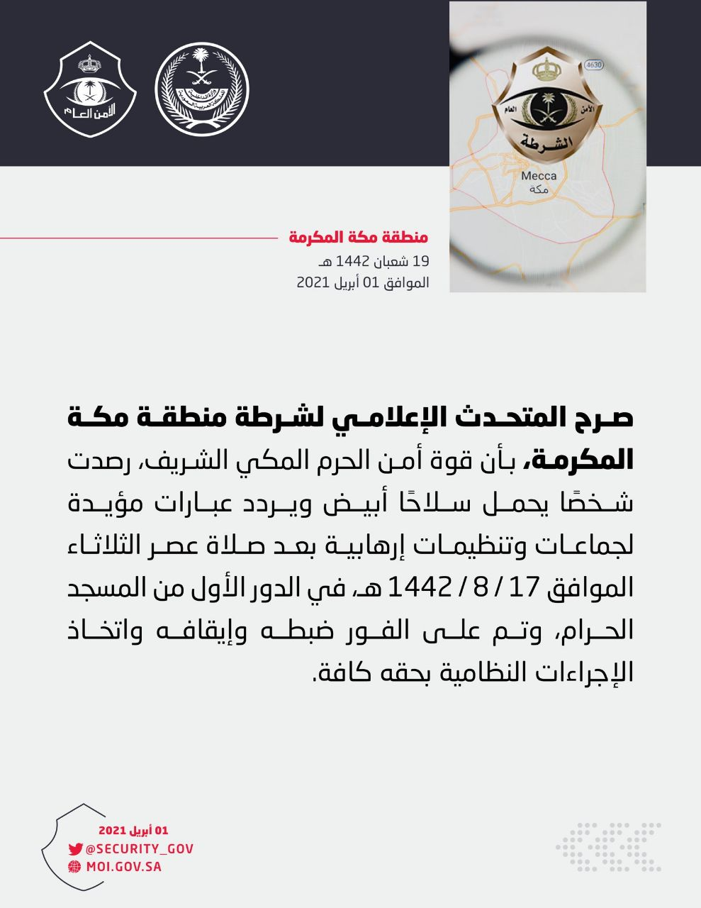 پلیس مکه مکرمه نیز با انتشار اطلاعیه از دستگیری این فرد و تحویلش به مراجع ذیربط خبر داد.